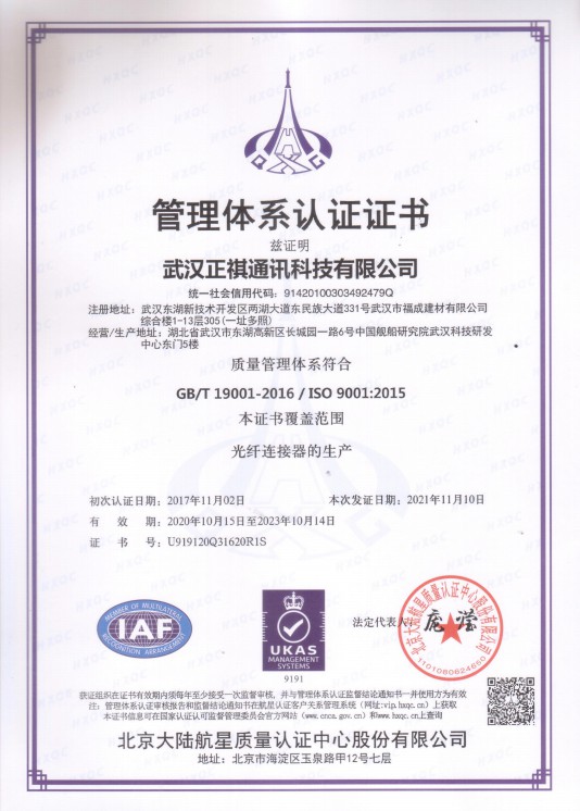 管理体系认证证书
